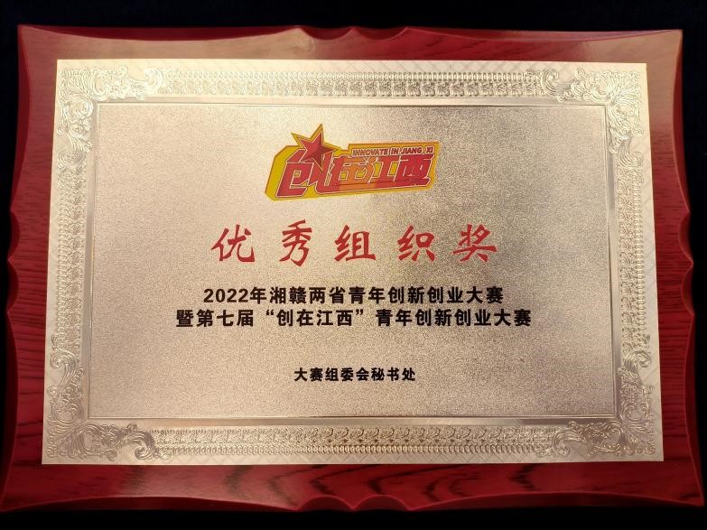 4月11日,2022年湘赣两省青年创新创业大赛暨第七届“创在江西”青年创新创业大赛颁奖仪式在萍乡市举行,我校荣获“优秀组织奖”。